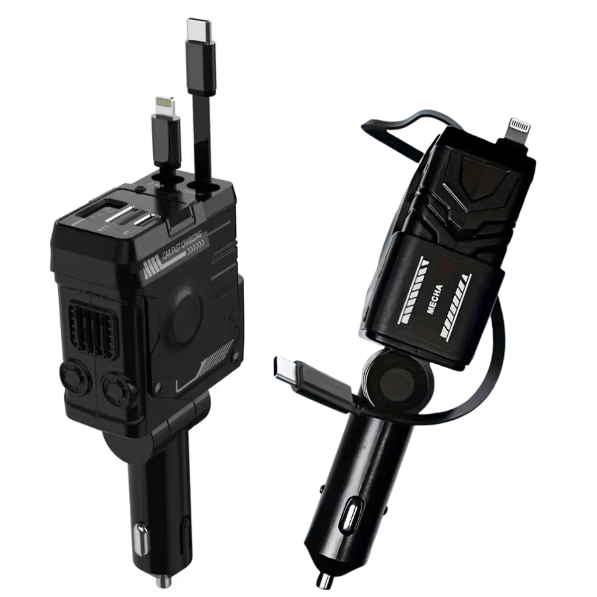 1 Carregador automotivo com cabos retráteis integrados